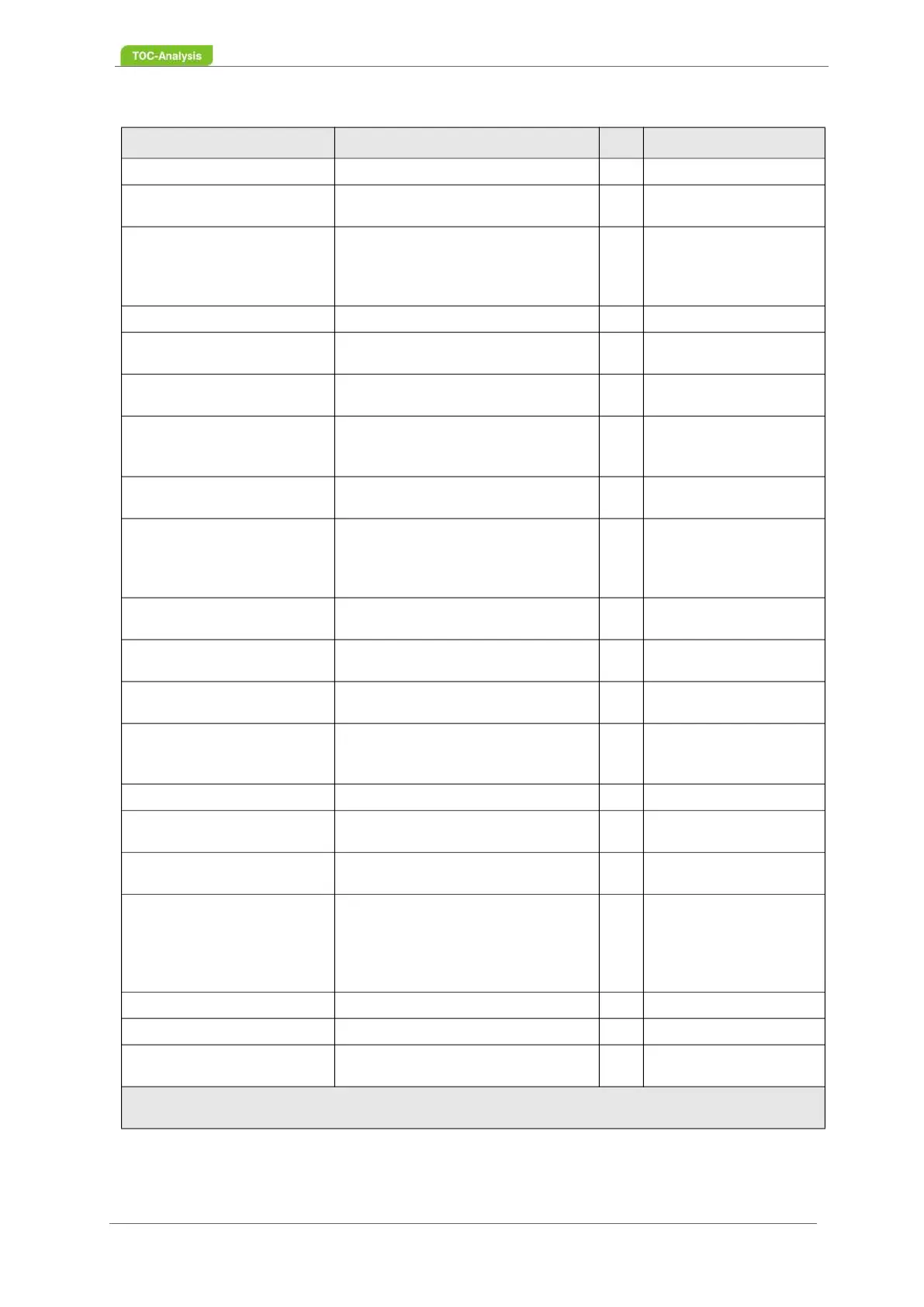 Table 7: Start-up protocol for the analyser