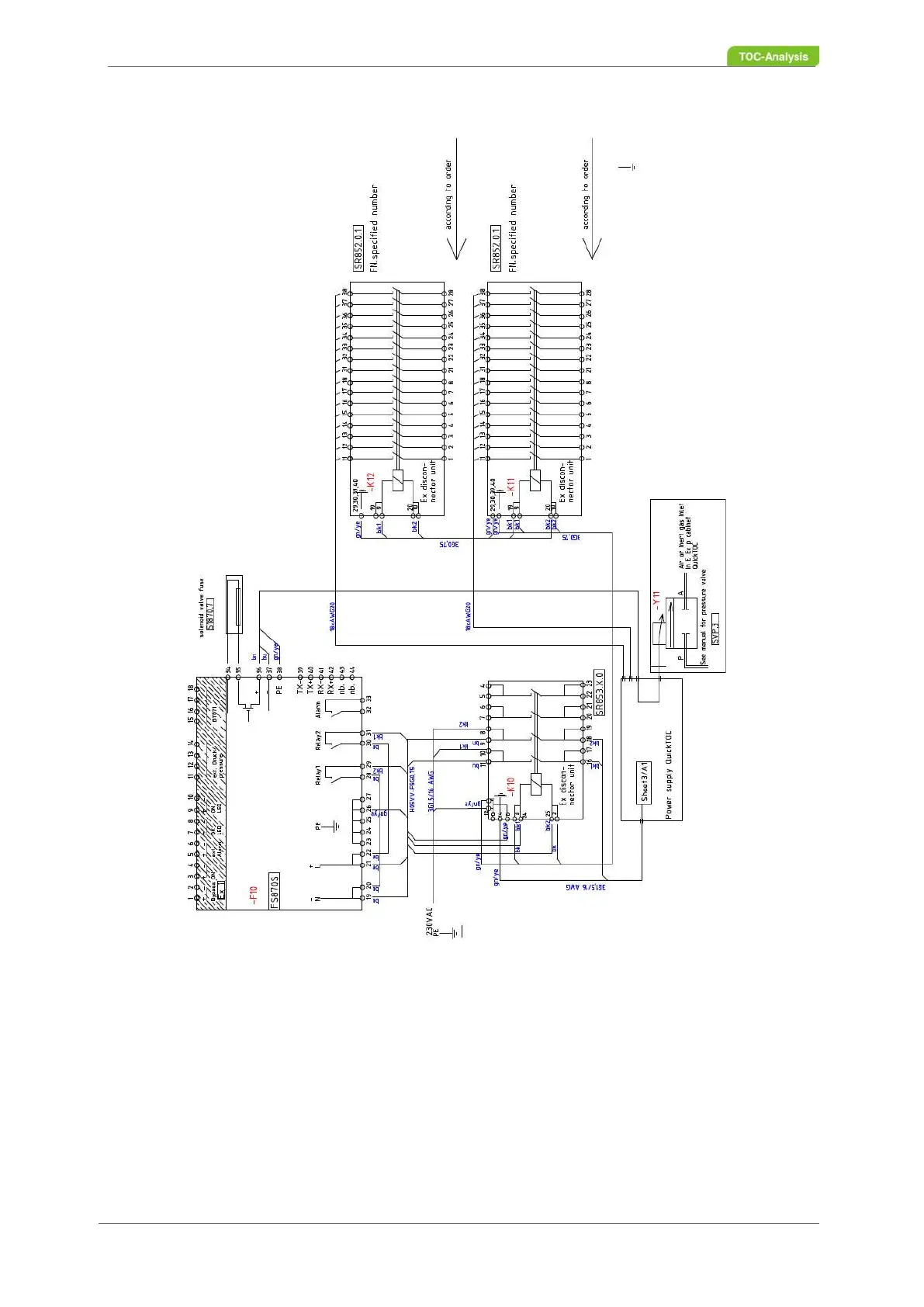disconnected by unit SR853. This unit switches the analyser off in case of a pressure alarm of the control