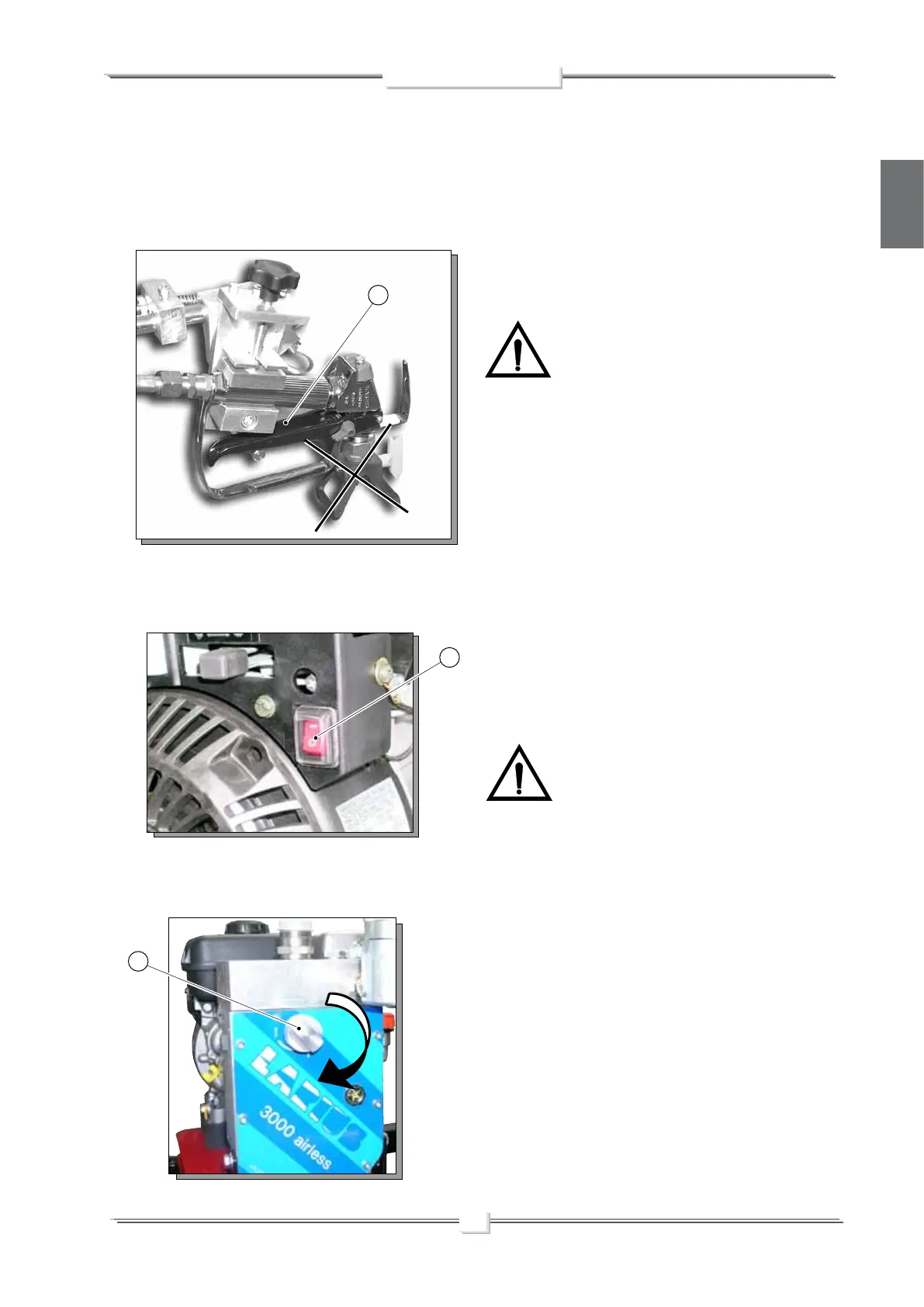 • Turn clockwise the pressure control knob (G3) so as the