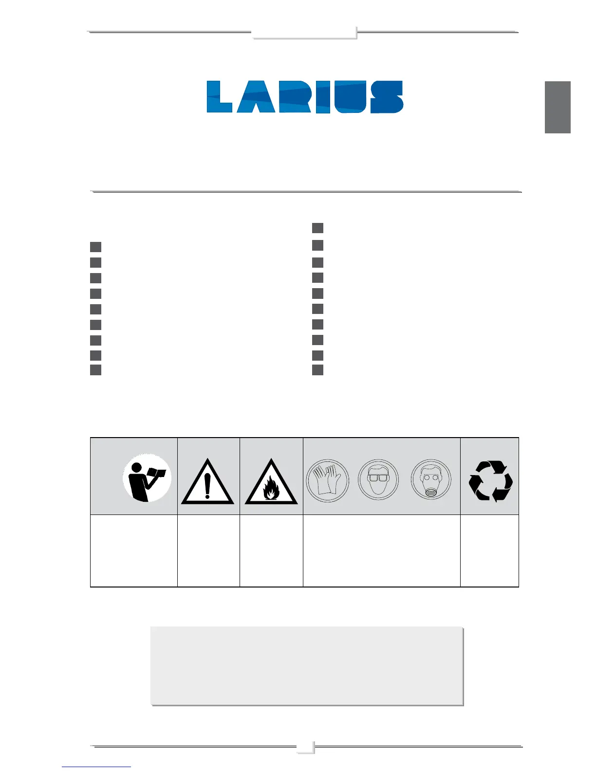 Thank you for choosing a LARIUS S.R.L. product. As well as the product purchased,