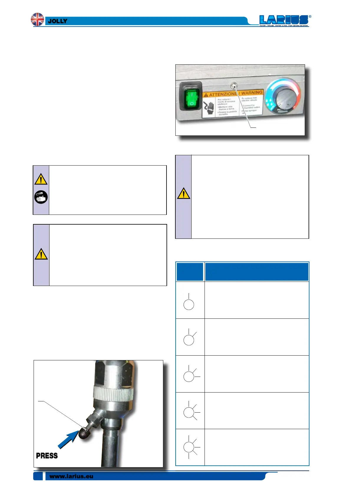 • Slowly turn clockwise the pressure control knob to reach