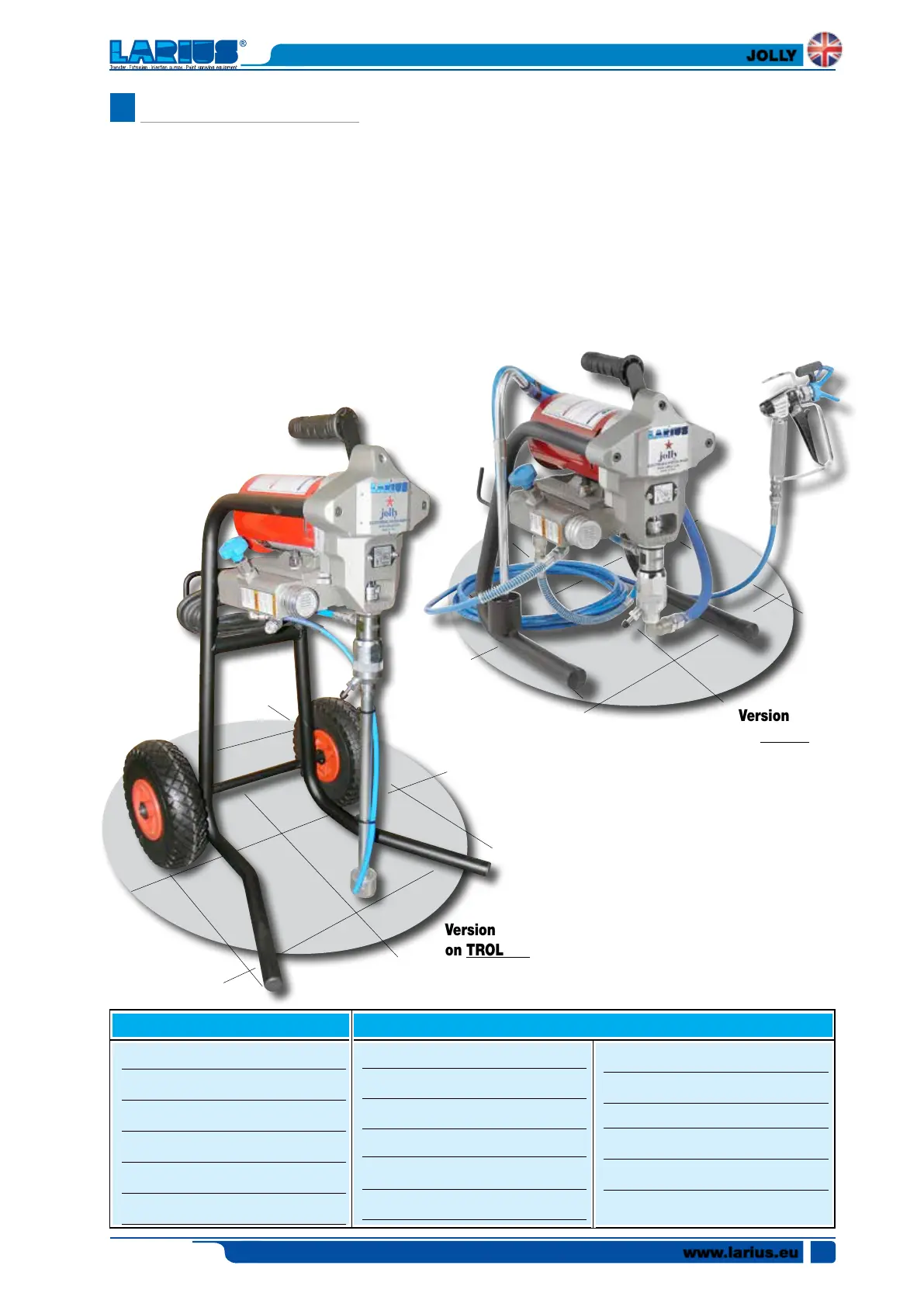 The LARIUS JOLLY unit is defined “electric piston pump”.