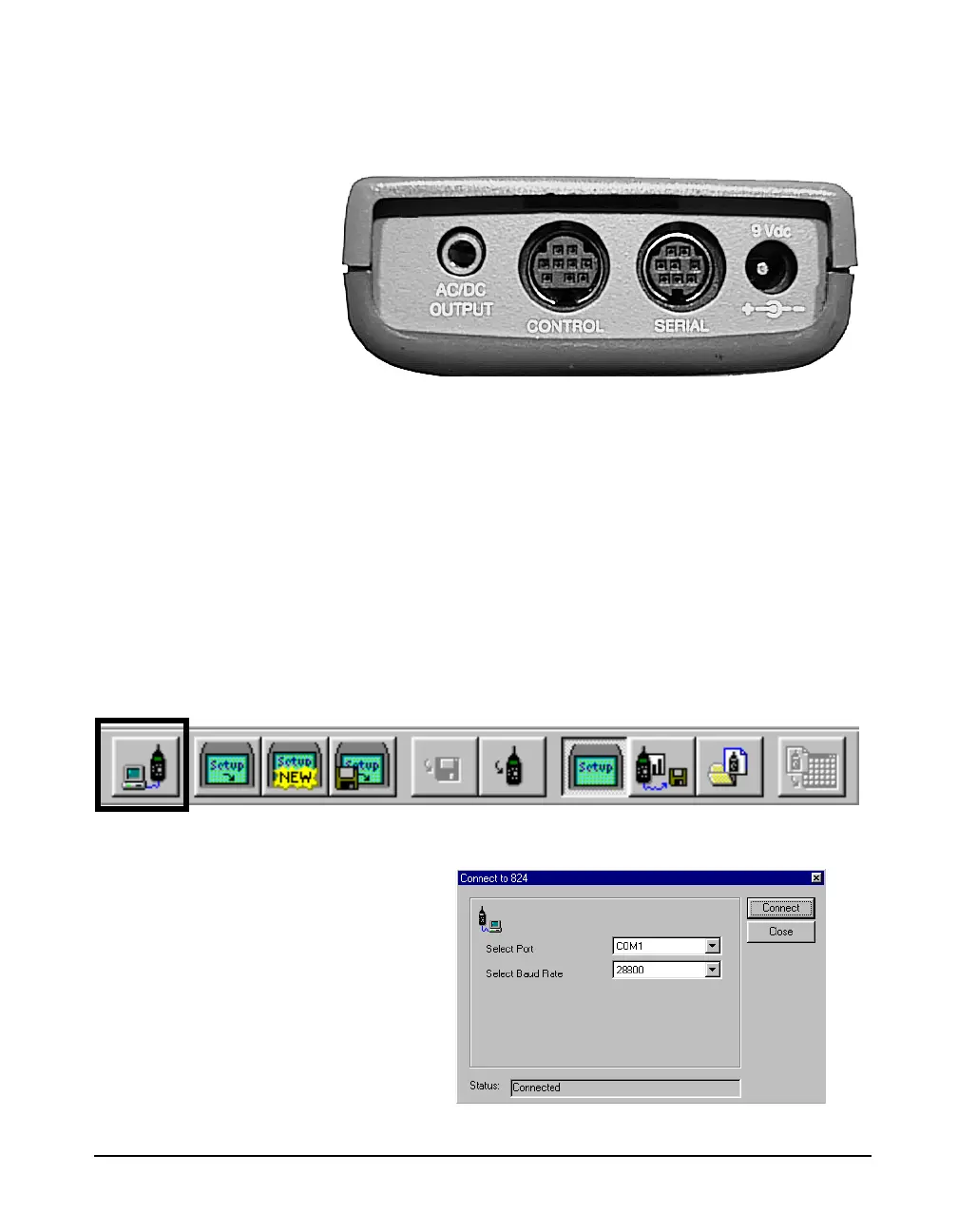 connect the 824 to the 824 Utility software. To connect to