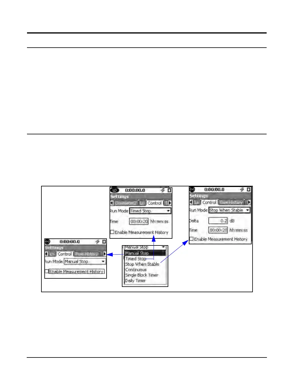FIGURE 6-2 Setup of Manual Stop, Timed Stop, and Stop When Stable Run Modes