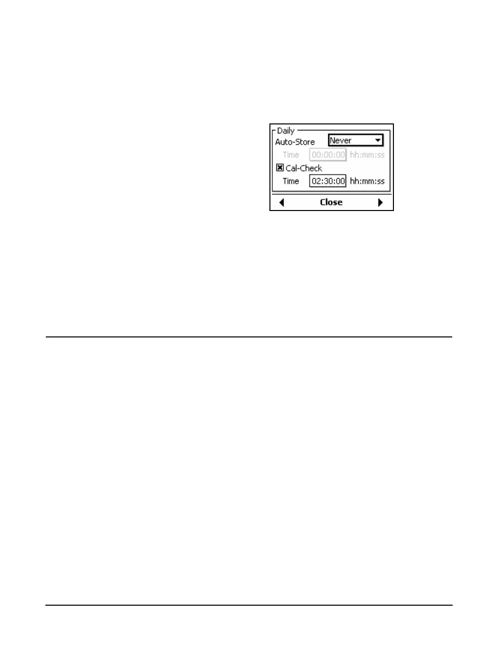 keys to set the time at which the calibration check is to take