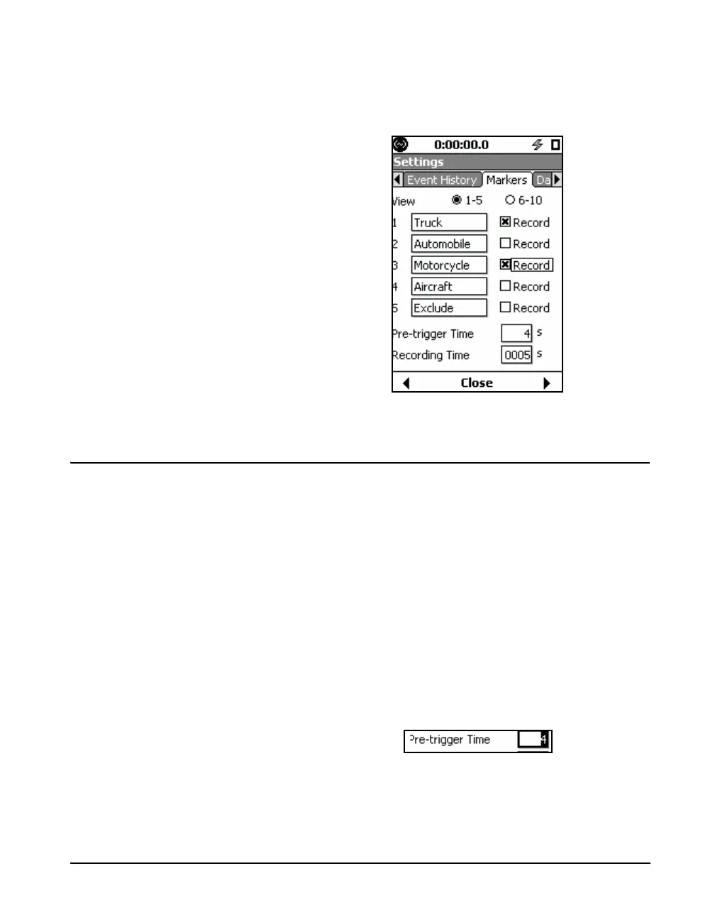 To enter the Pre-trigger Time, highlight the Pre-trigger data