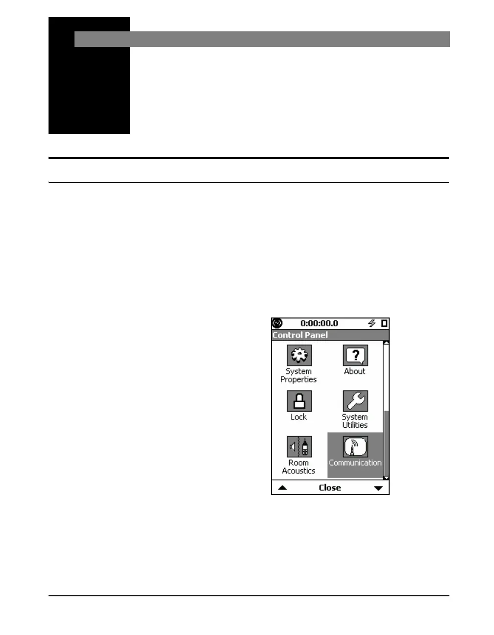 down the Control Panel display to see the Communication