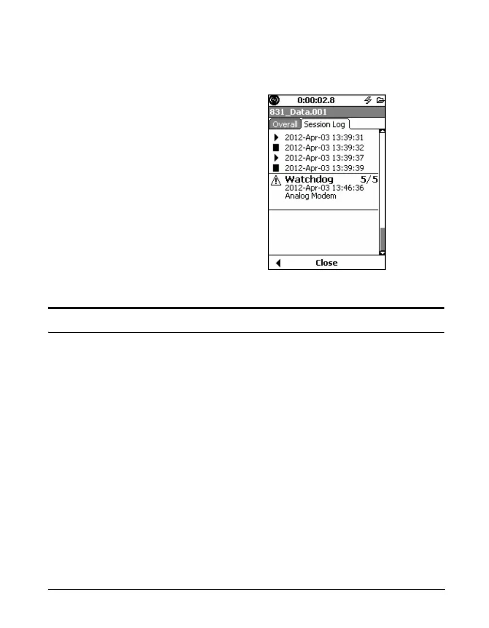 the analog modem. The event is indicated in the Session
