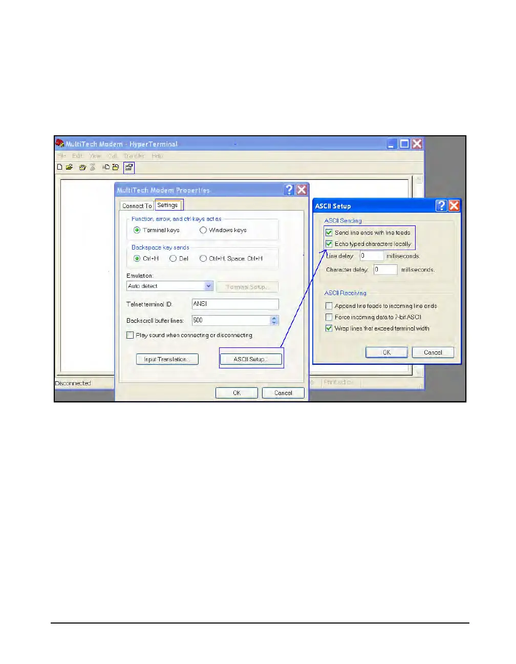 • Enable Send line ends with line feeds.
