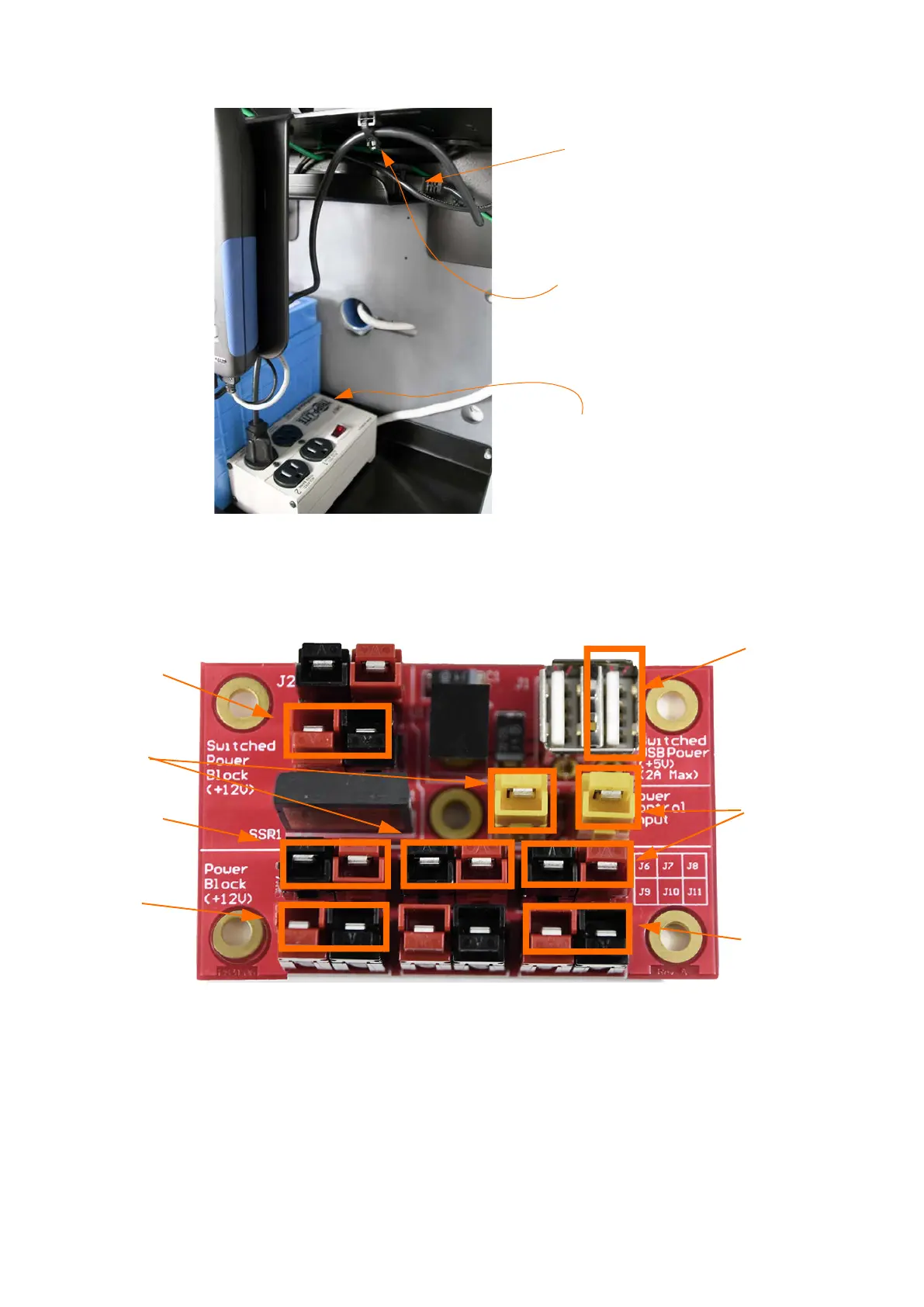 Step 4 Connect the battery to the power block on the line called