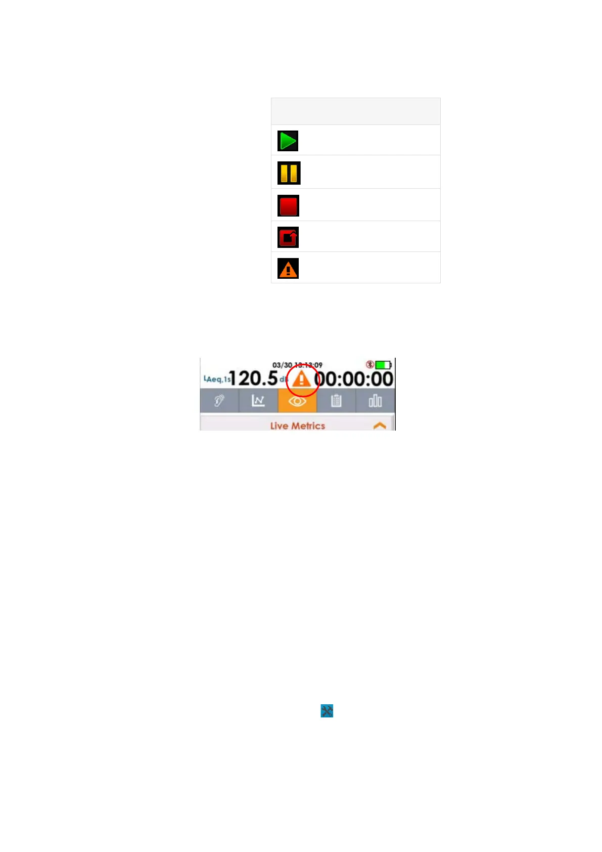 A caution or warning icon displays in the center of the meter status bar when the microSD