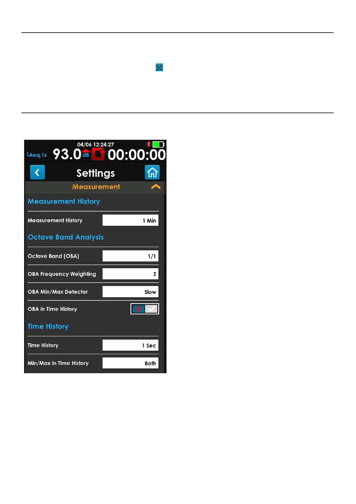 Settings. The Measurement settings appears, as shown in
