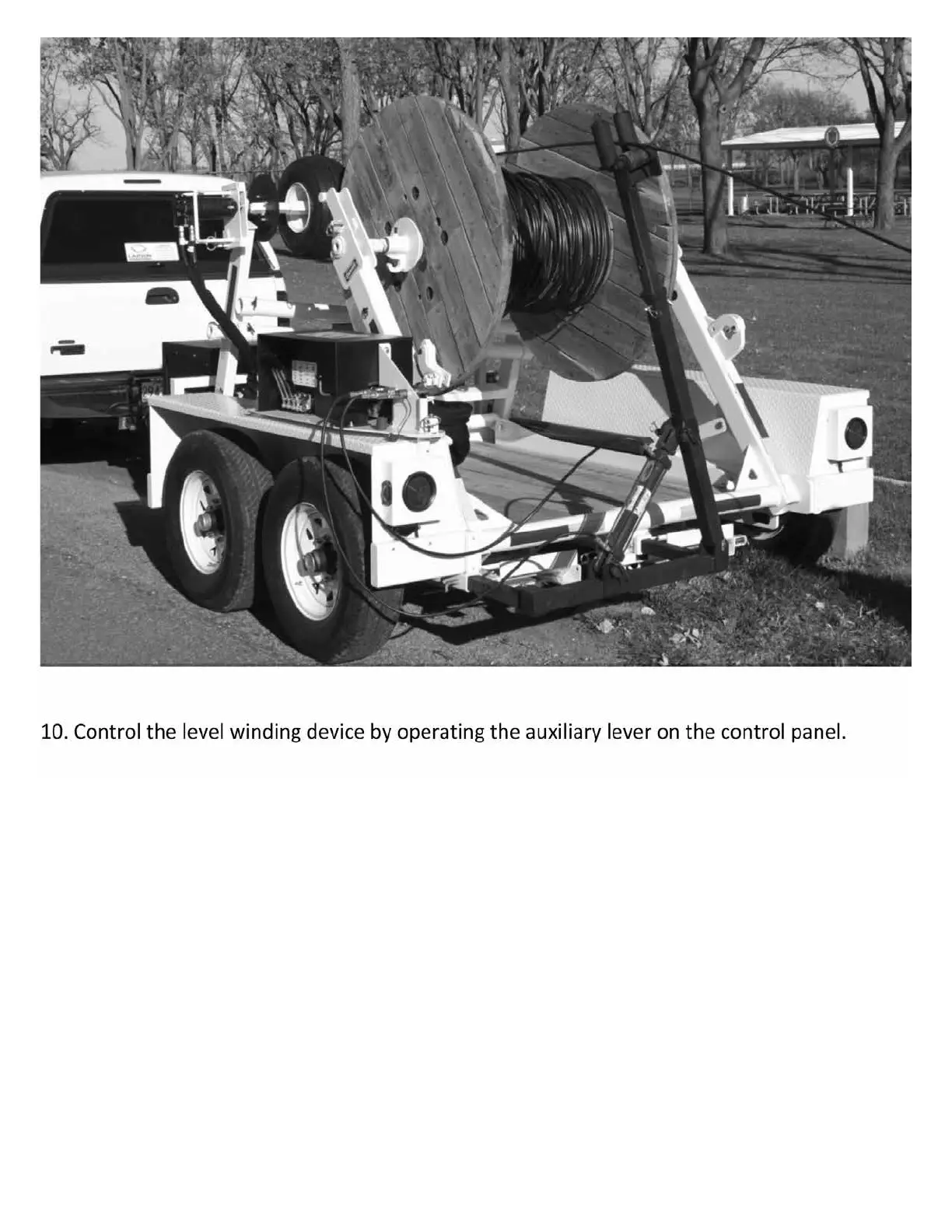 10. Control the level winding device by operating the auxiliary lever on the control panel.