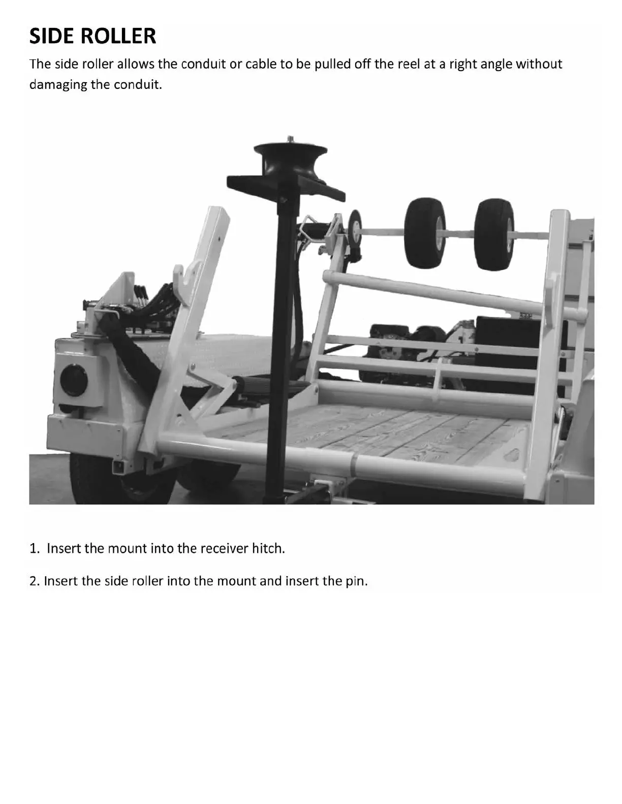 The side roller allows the conduit or cable to be pulled off the reel at a right angle without