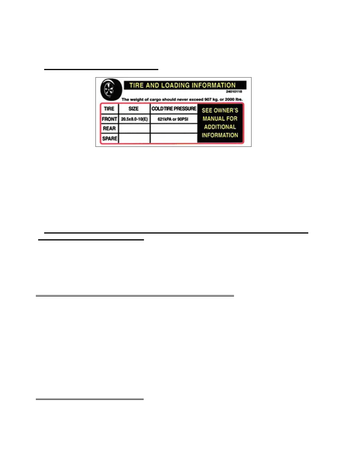 certification/VIN label and/or on the Tire Placard. This value should never exceed the maximum cold inflation pressure
