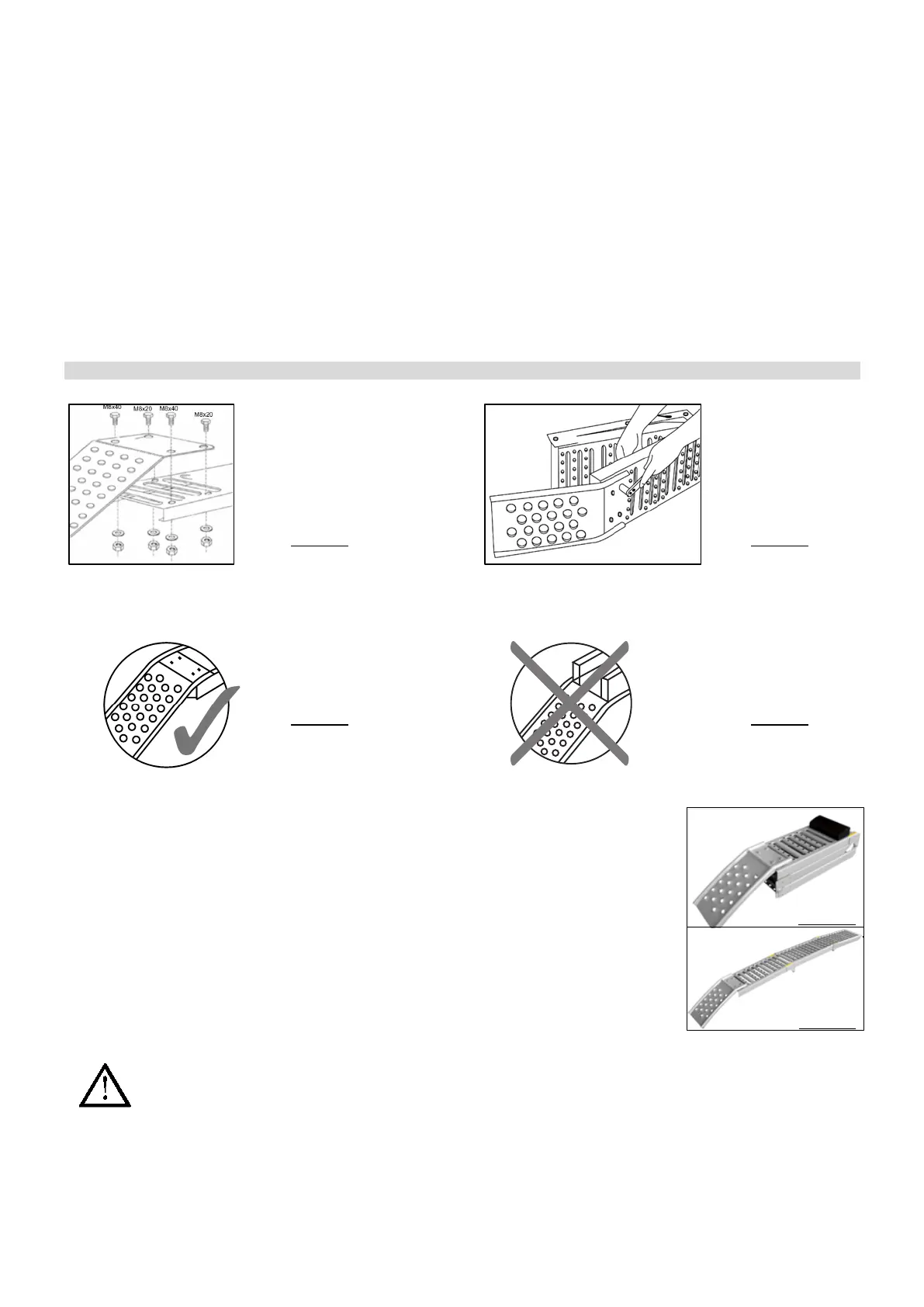 base using 2 screws M8 x 40, 2 screws M8 x 20 and washers and nuts to the upper section of the ramp, see Figure