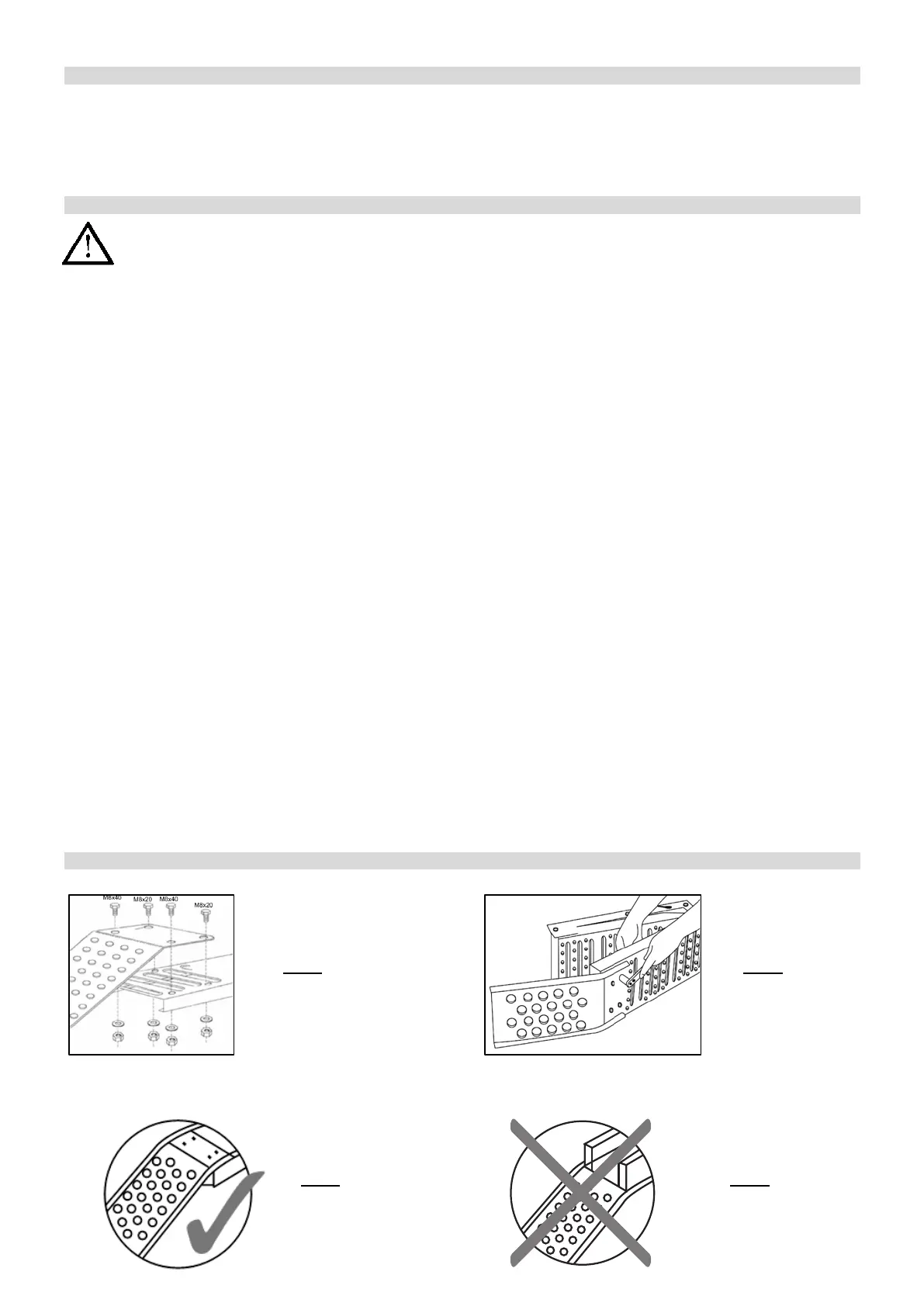 rampe avec 2 vis M8 x 40 et avec 2 vis M8 x 20, ainsi qu'avec des rondelles et des écrous sur la section supérieure