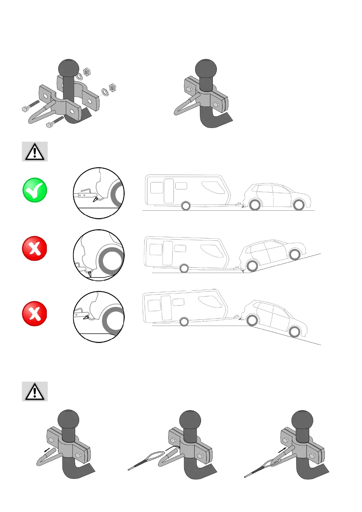 Figure 3 : Tirer sur la douille à ressort Figure 4 : Accrochage du câble de rupture d‘attelage Figure 5 : Fermeture de la douille à ressort