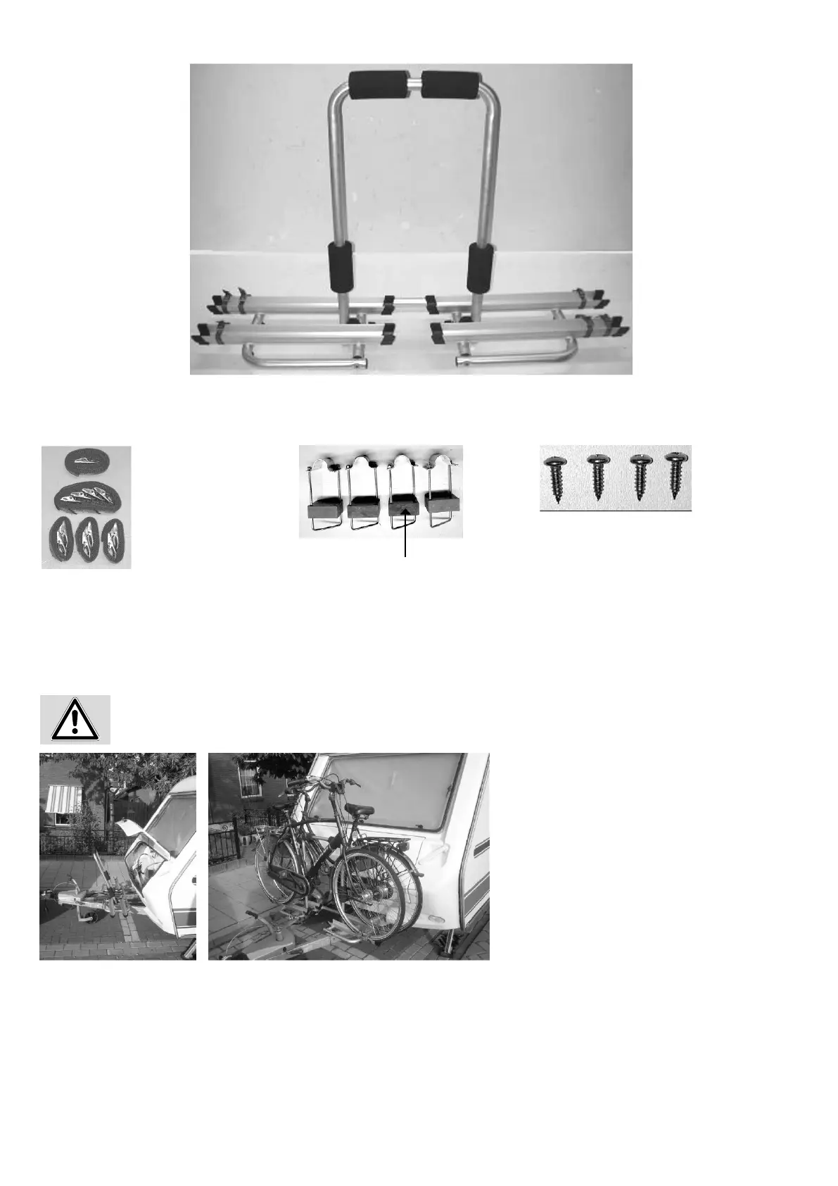 non poggi ne urti, i blocchi di plastica appoggiano sotto il porta-biciclette sul timone della roulotte. Le stae di serraggio vengono messe attorno al prolo del