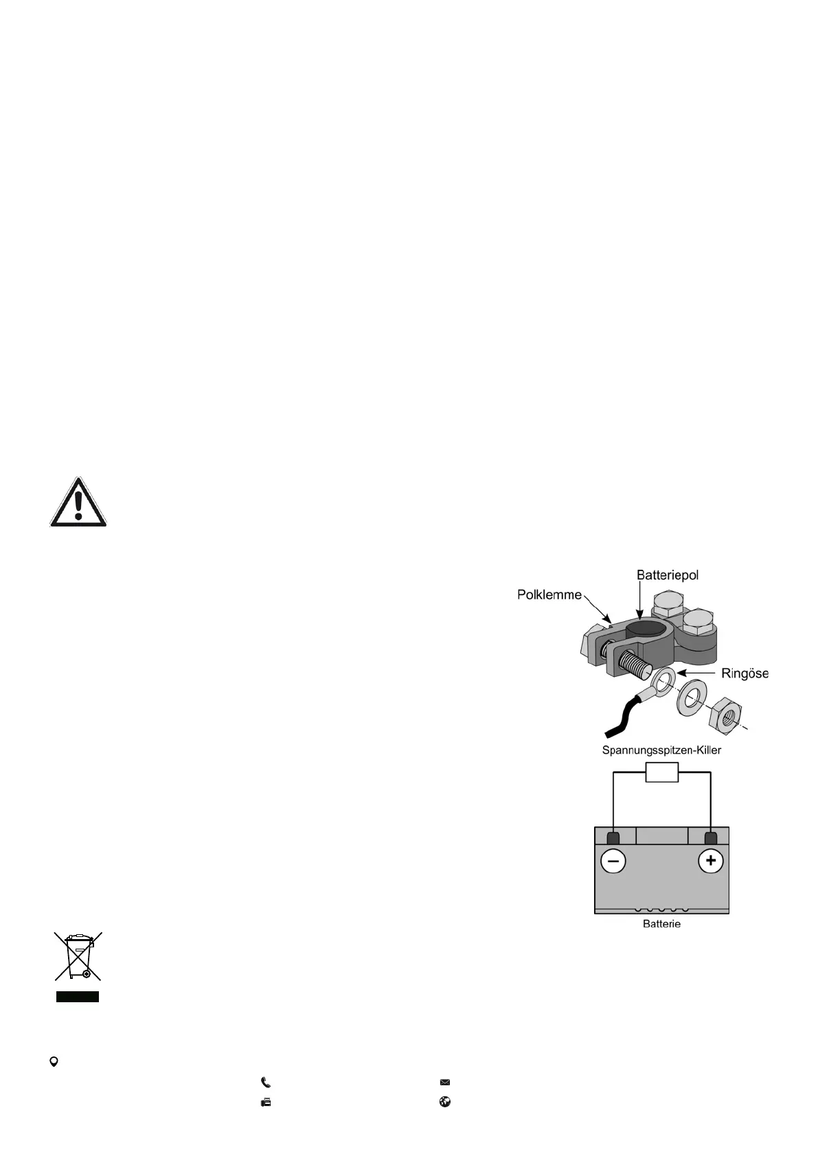 angeschlossen wird. Eine Verpolung des Spannungsspitzen-Killers ist nicht möglich.