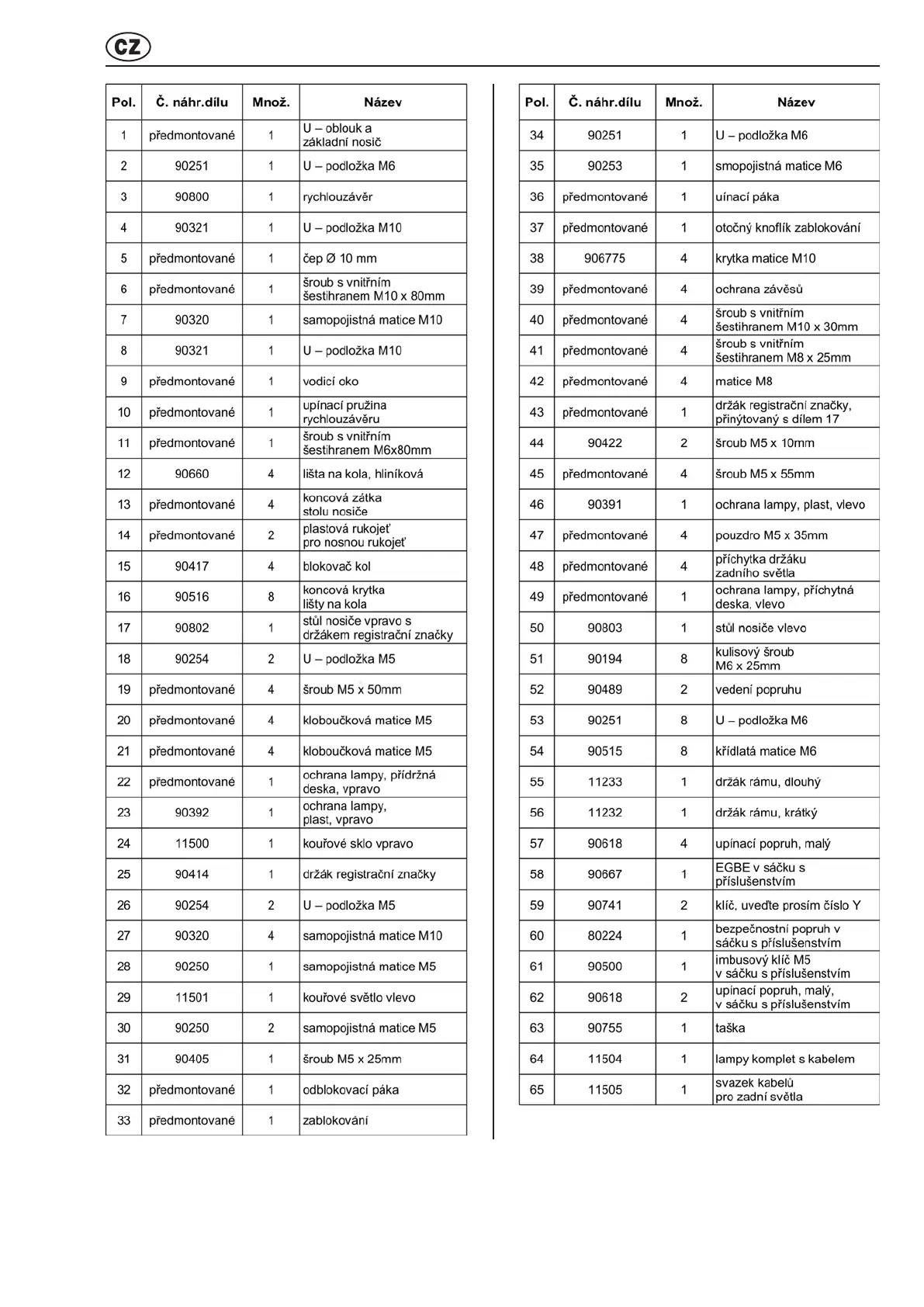 LAS Premium - Přehled O Náhradních Dílech - Tabulka