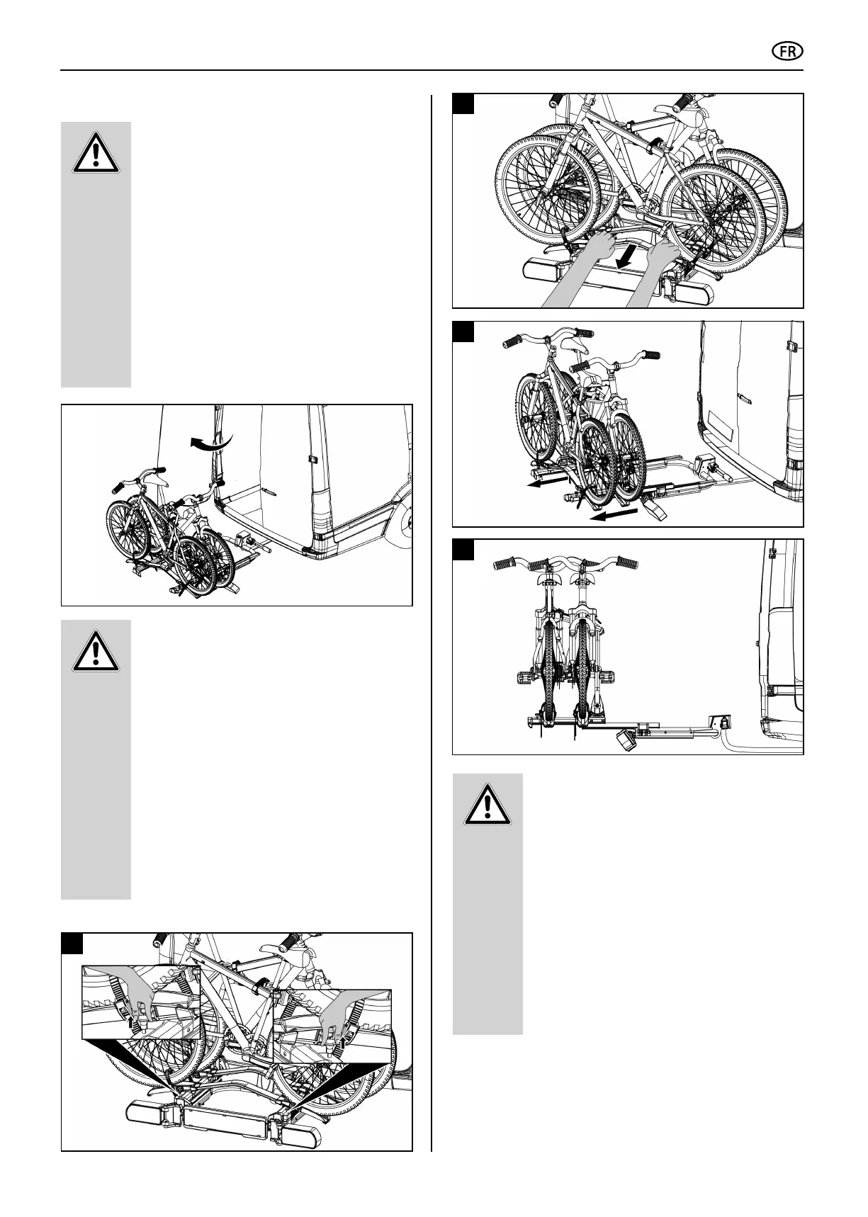 sous ou devant le porte-vélo, peuvent être écrasés.