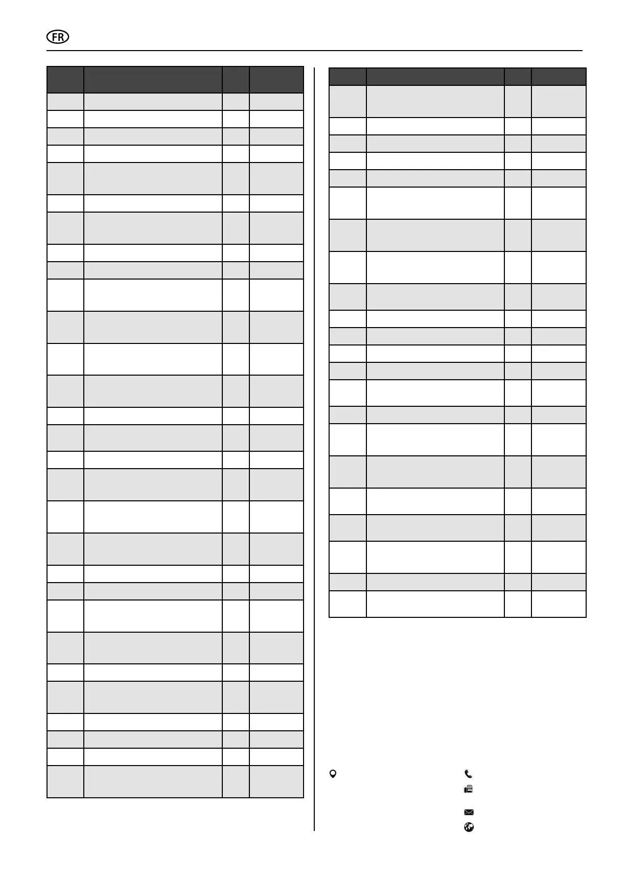 Aperçu des pieces de rechange (tableau)