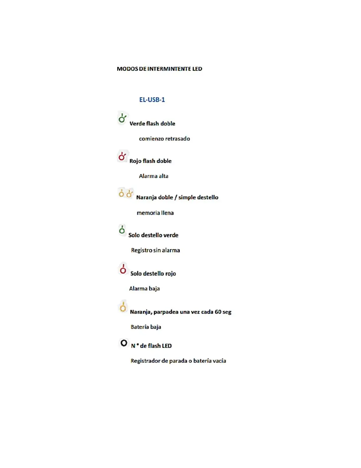 Lascar Electronics EL-USB-2-LCD - LED Indicator Modes; EL-USB-1 LED Patterns