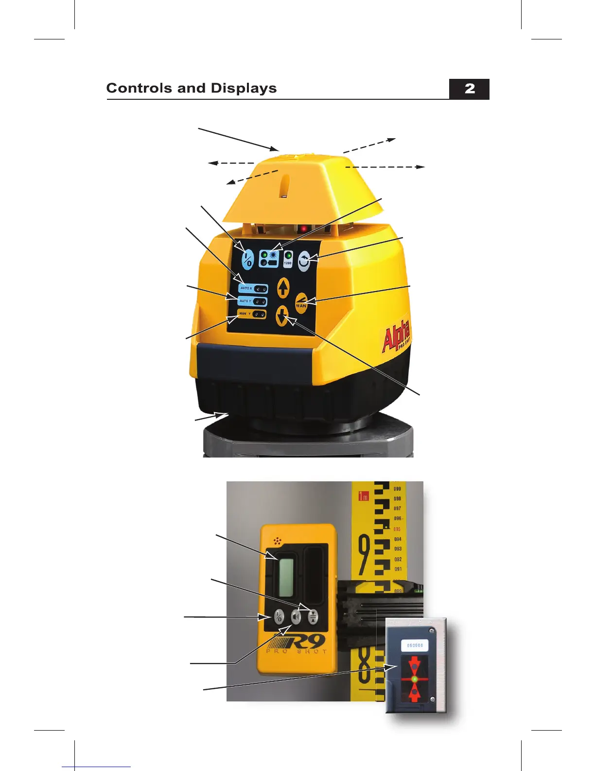Laser Reference Pro Shot Alpha - Controls and Displays Overview; Laser Unit Controls and Indicators Diagram; R9 Receiver Controls and Displays Diagram