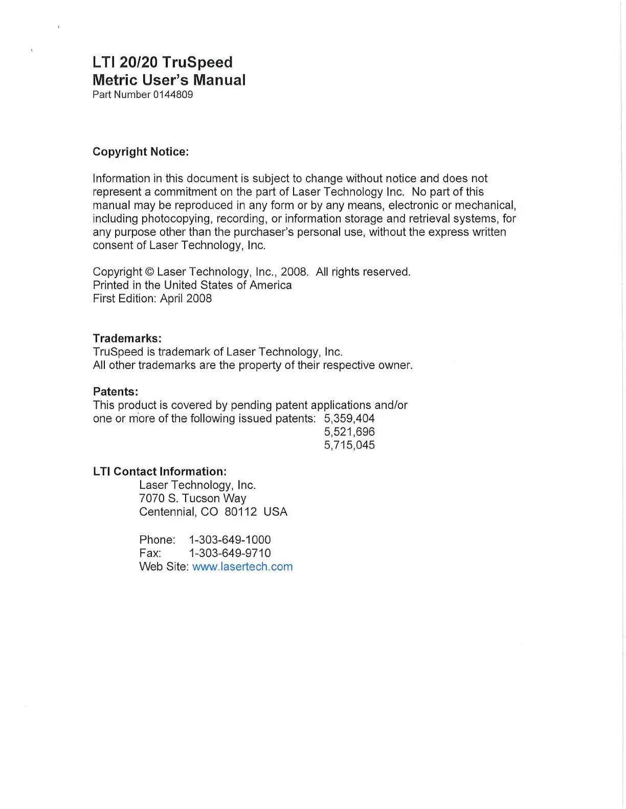 Laser Technology TruSpeed LTI 20/20 - Page 2