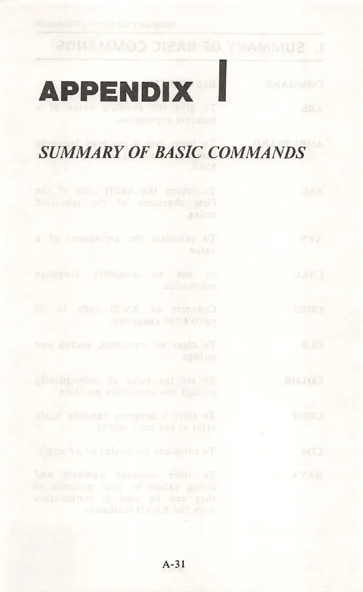 Laser 128 - Appendix I: Summary of BASIC Commands