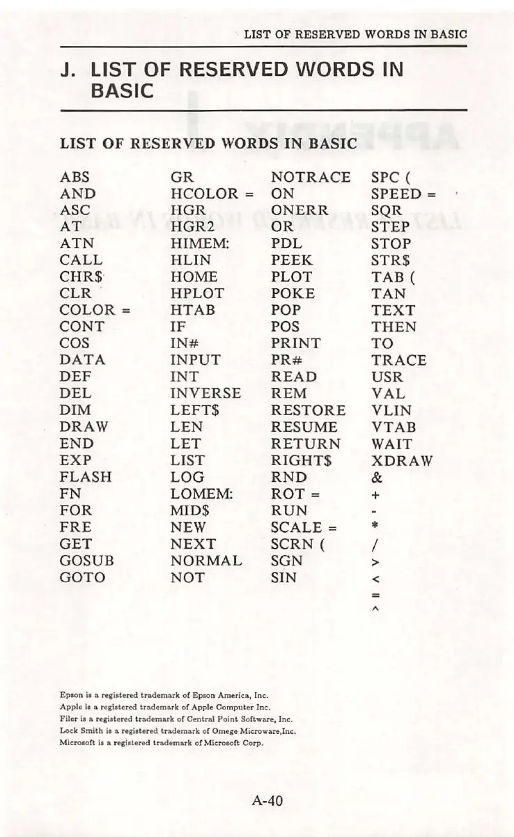 LIST OF RESERVED WORDS IN BASIC