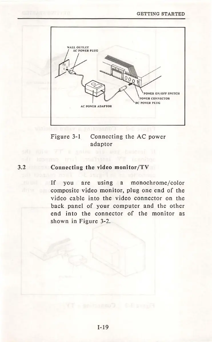 Laser 128 - Connecting the Ac Adaptor; Connecting the Video Monitor; Tv