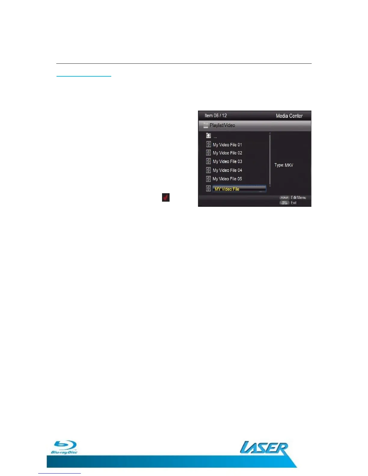 Press the POPUP/TITLE button to display the options menu for the playlist.