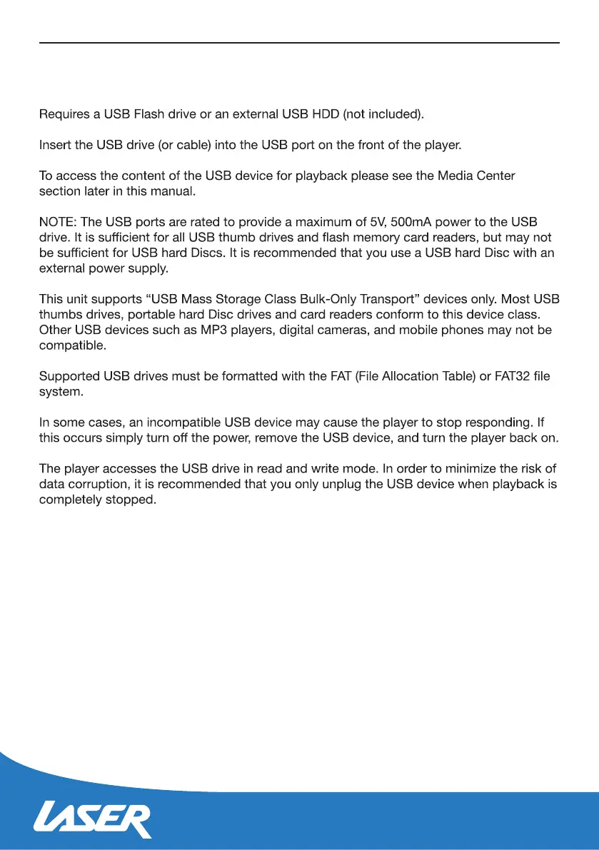 Laser BLU-BD4000 - Connecting a USB Device; USB Device Setup and Usage