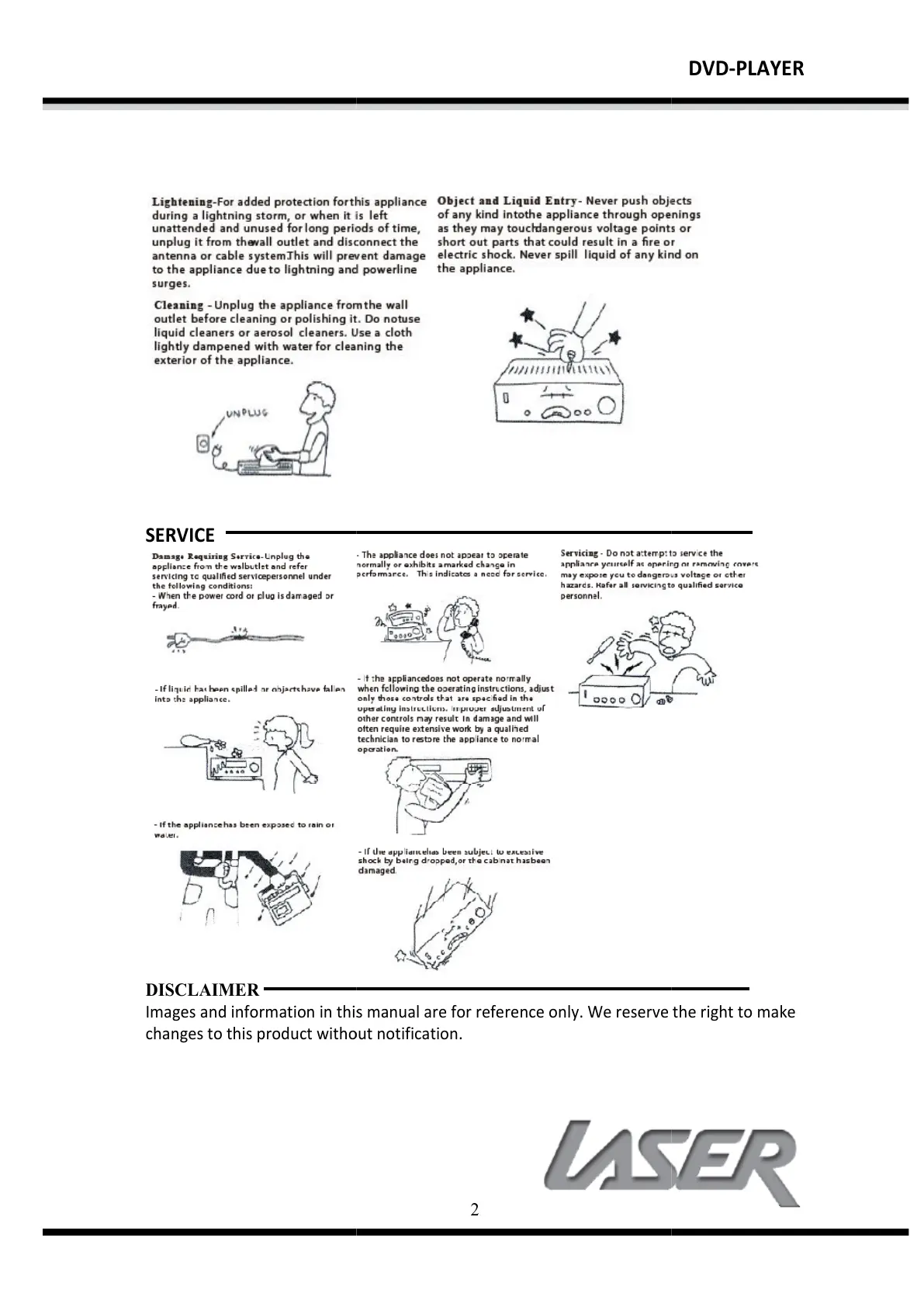 Laser DVD-HD007 - Service and Disclaimer; Service Information; Manual Disclaimer