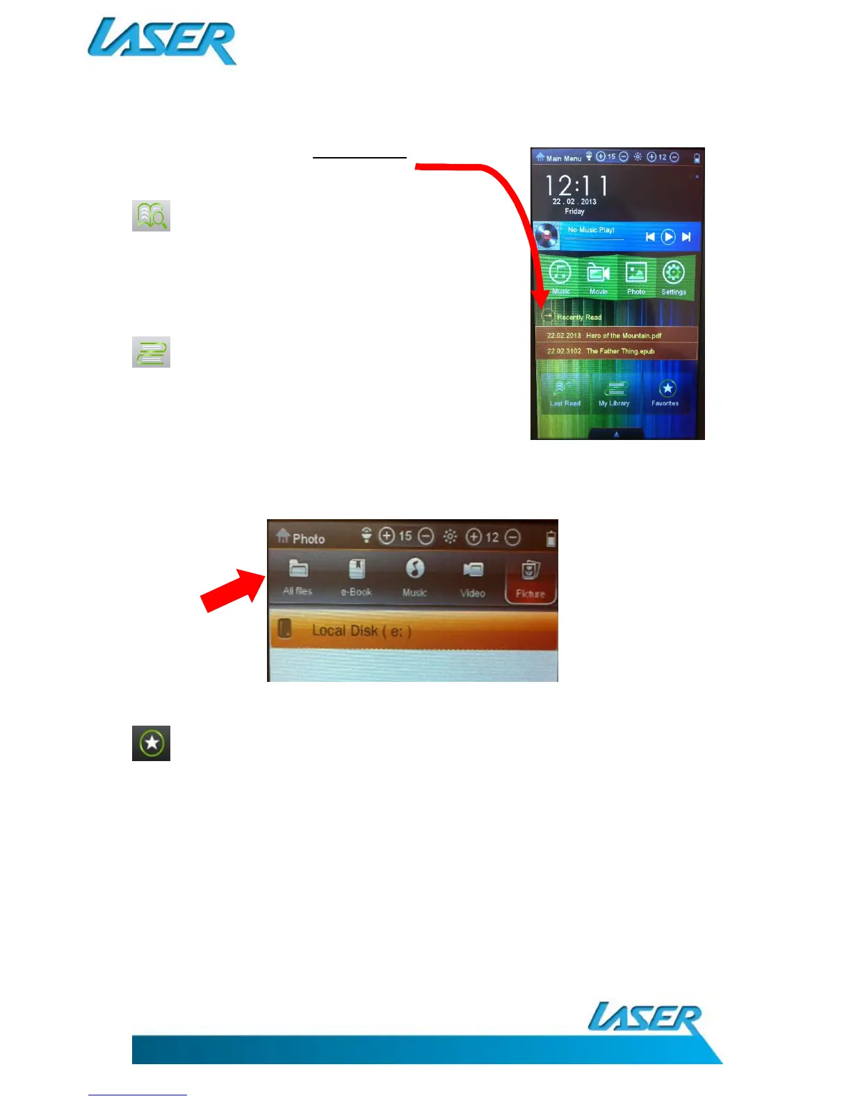 FAVOURITES Tap this icon to enter into your favourite books