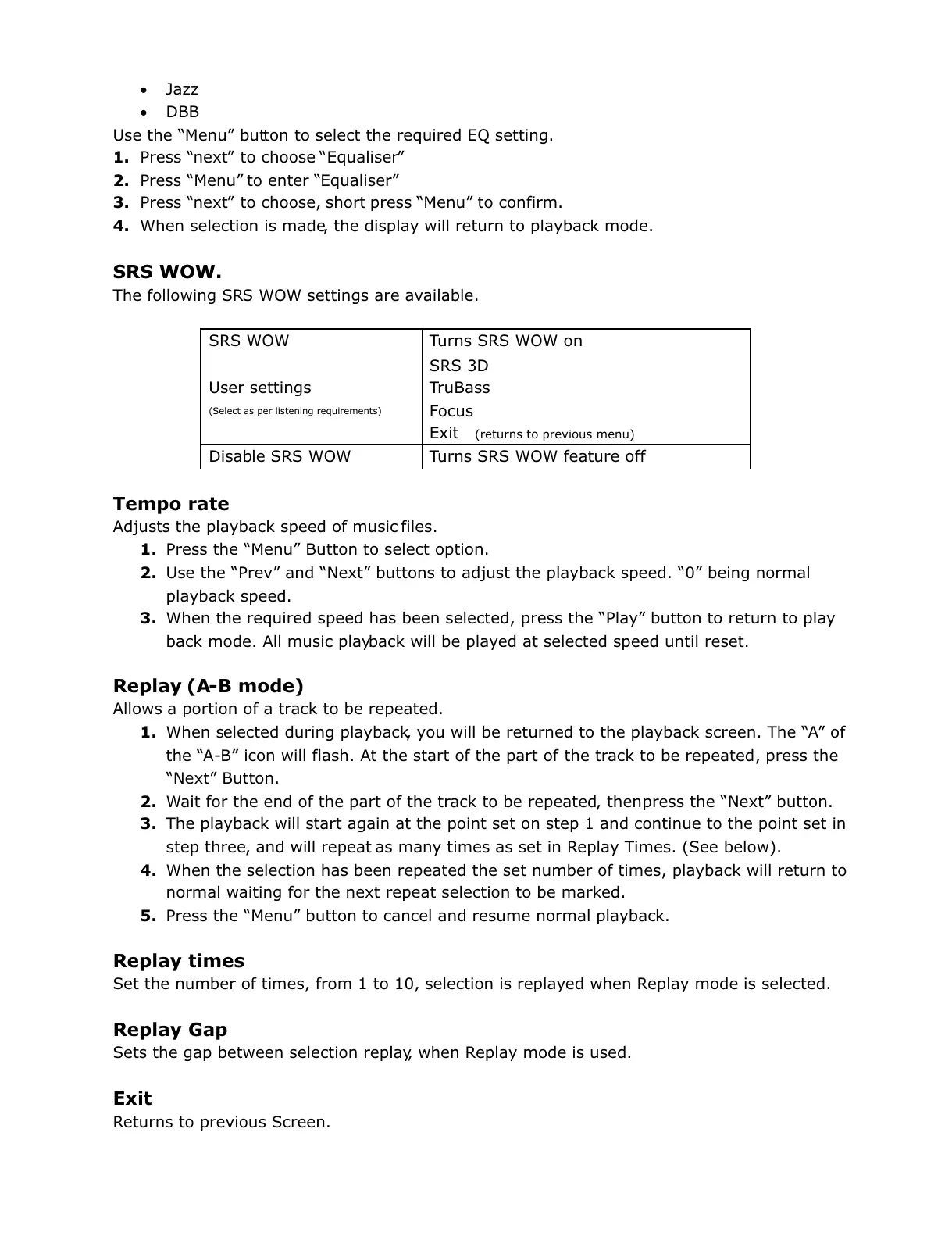 the “A-B” icon will flash. At the start of the part of the track to be repeated, press the