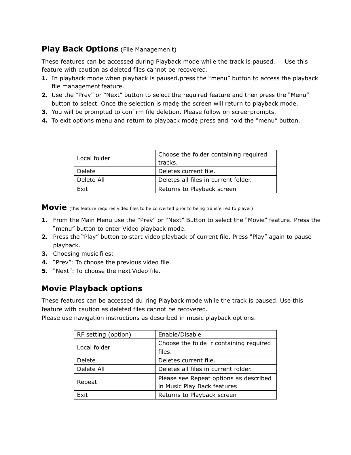 Movie (this feature requires video files to be converted prior to being transferred to player)