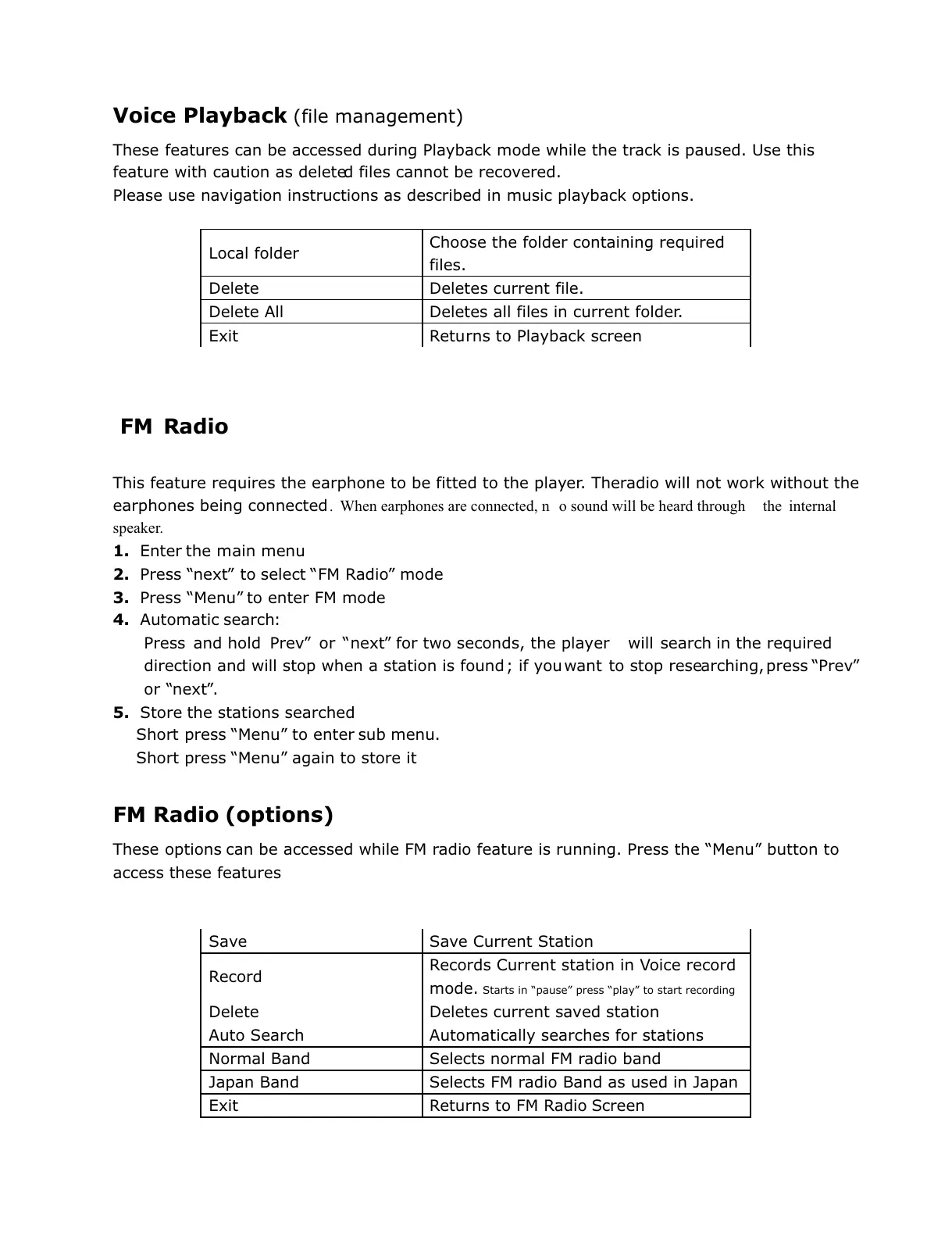This feature requires the earphone to be fitted to the player. The radio will not work without the