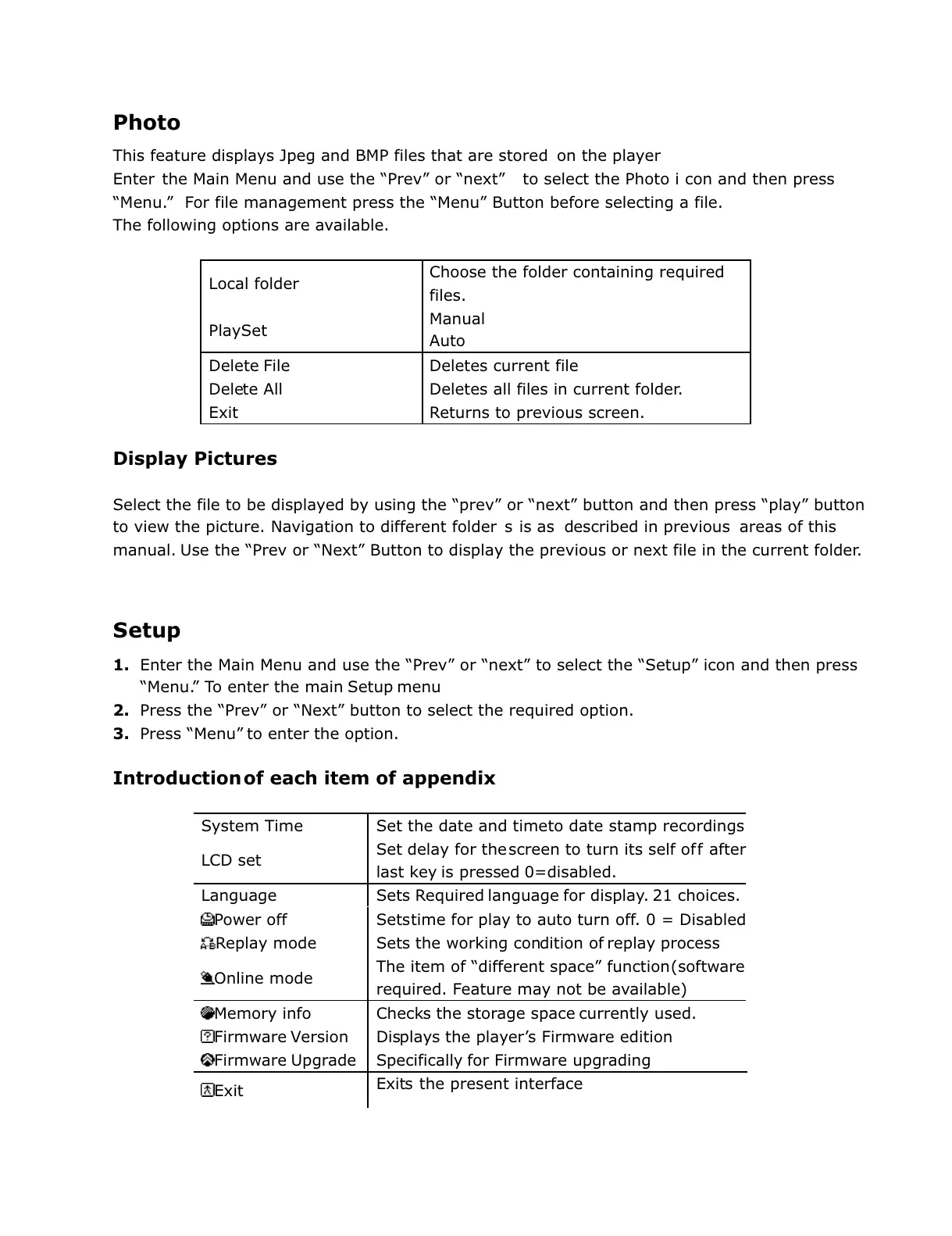 Enter the Main Menu and use the “Prev” or “next” to select the Photo i con and then press