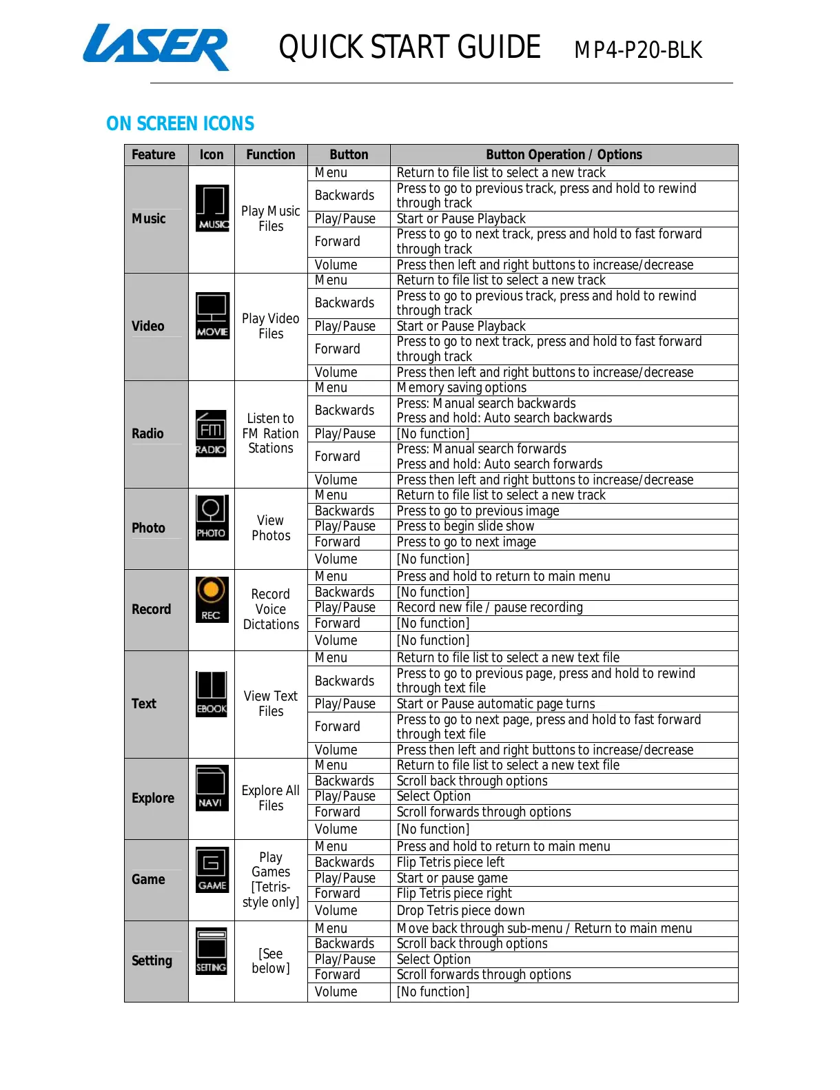 QUICK START GUIDE MP4-P20-BLK