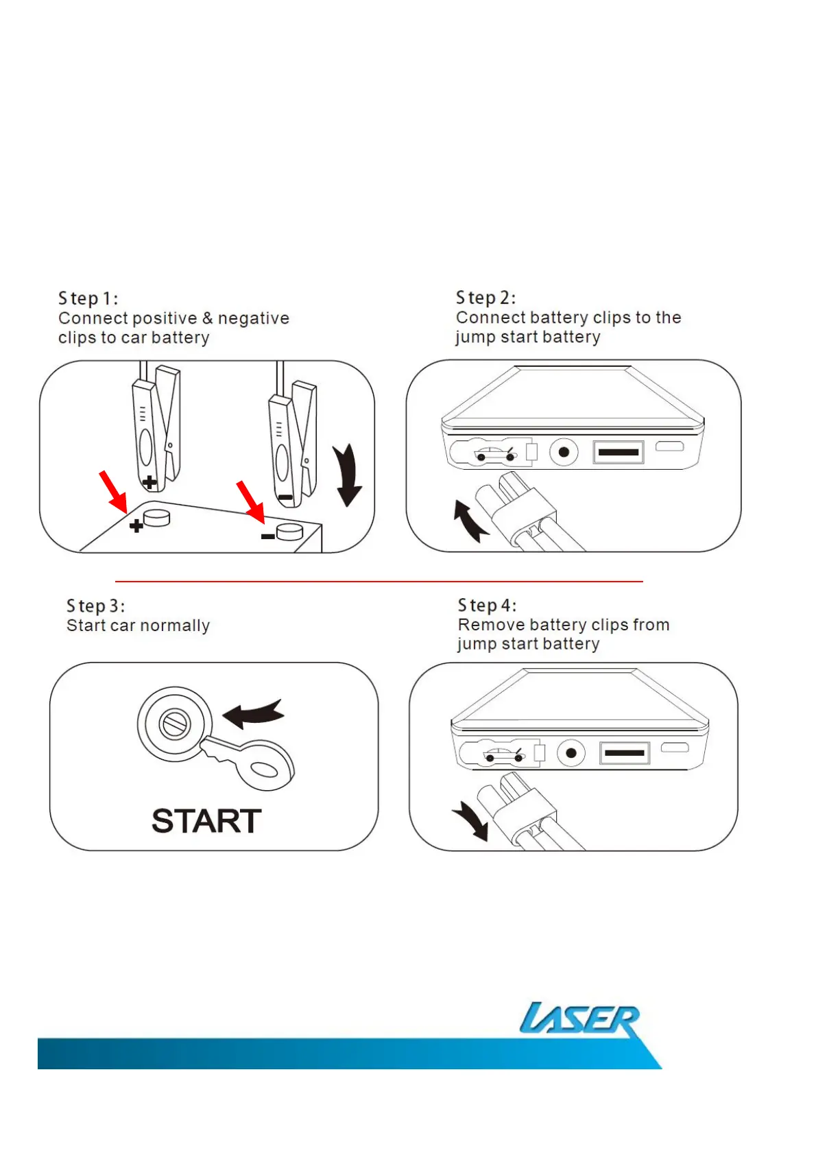 NOTE: TAKE NOTE OF THE BATTERY POLARITY BEFORE CONNECTING