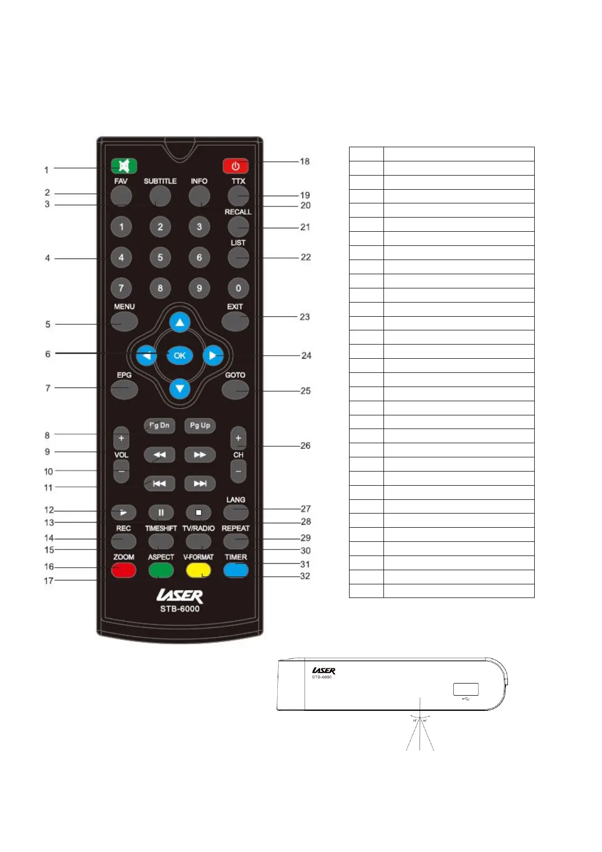 Laser STB-6000 - Remote Control; Key Function
