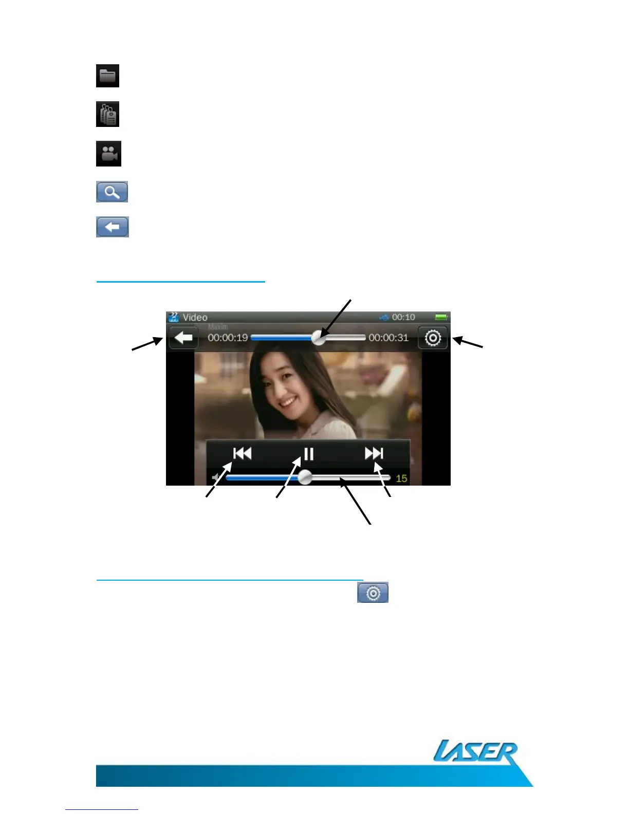 Video playback options - the settings icon