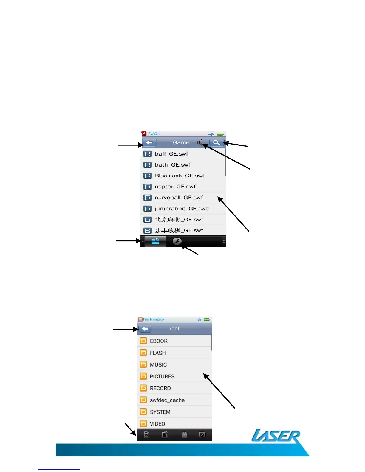 Select the flash icon from the main menu. Select any of the factory supplied games