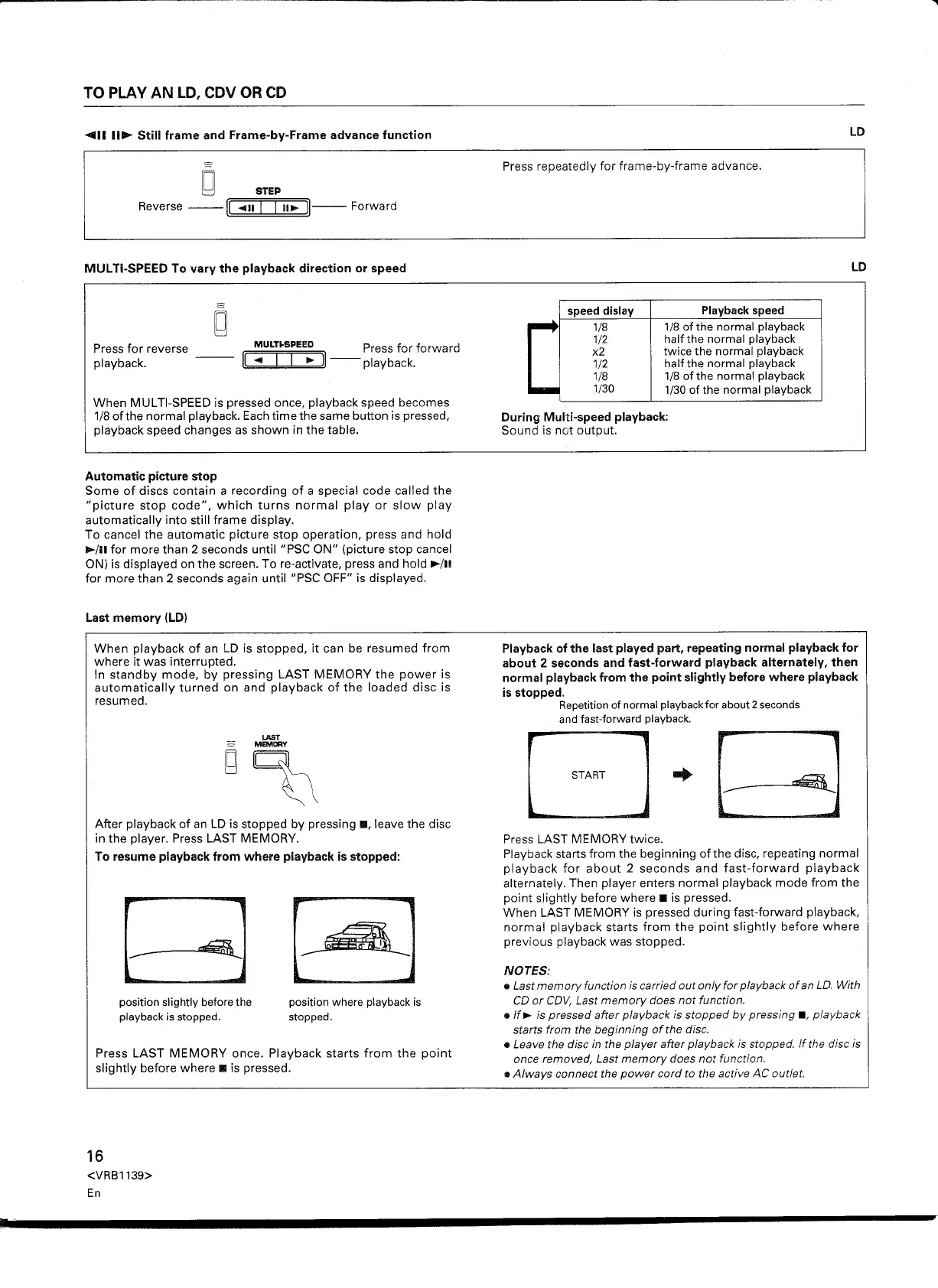 • Last memory function is carried out only for playback of an Lo. With
