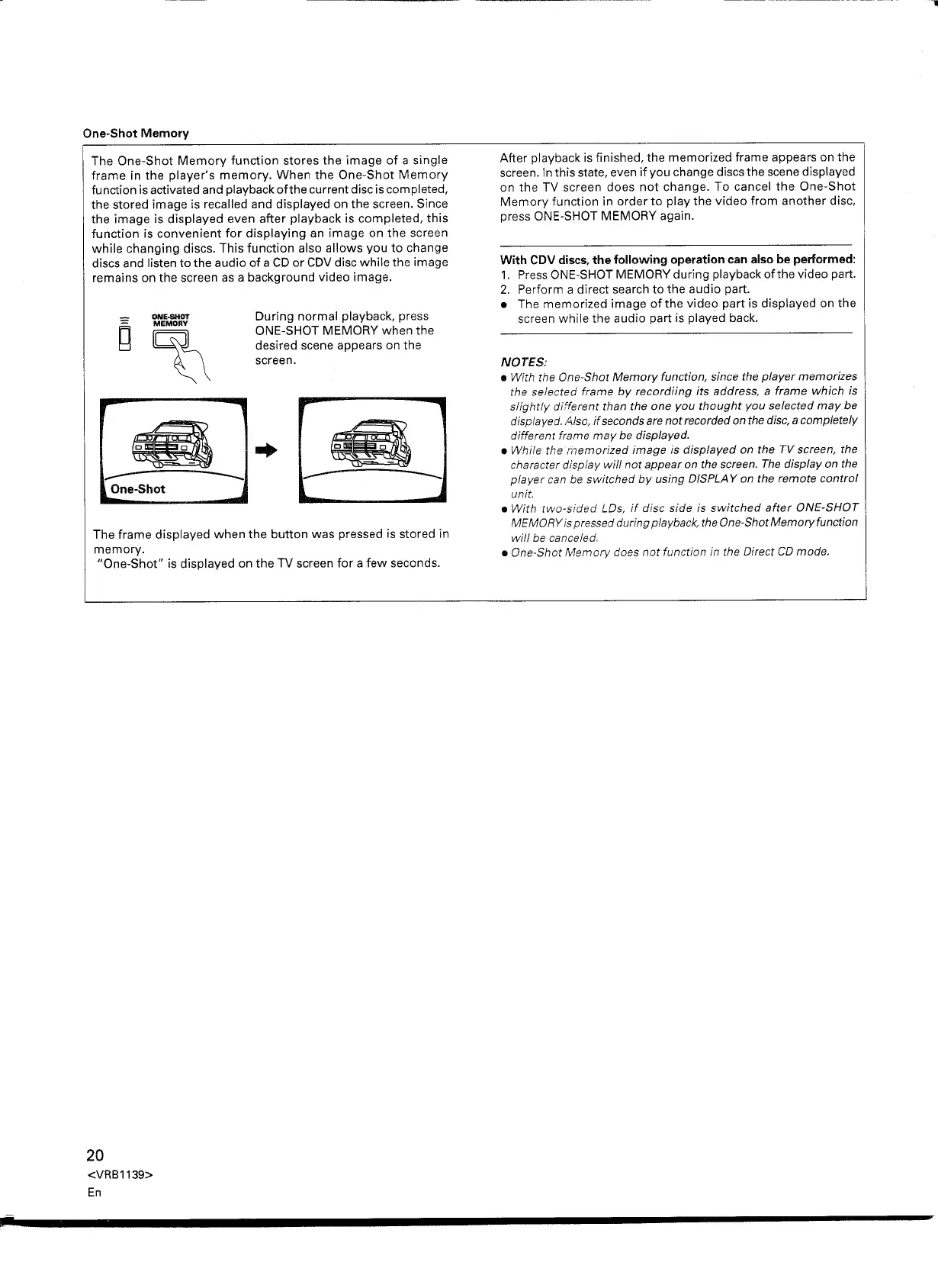 The One-Shot Memory function stores the image of a single