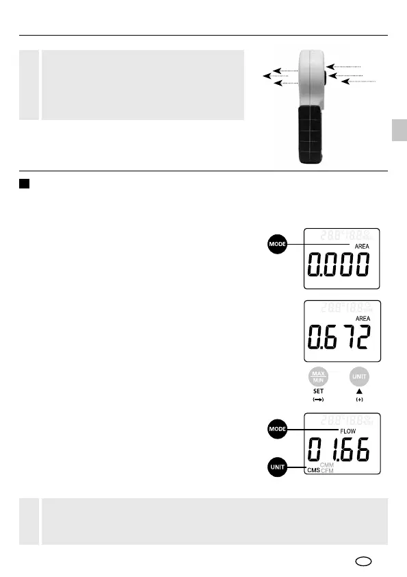 trykke på knappen „MODE“, indtil „AREA“ vises