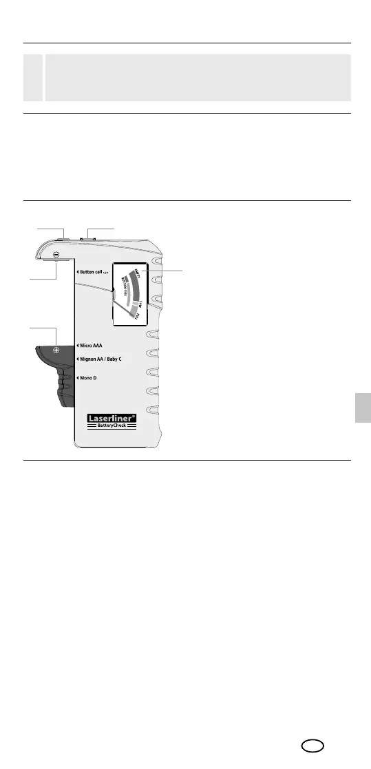 batterier). Batteriets tilstand indikeres på en lett avlesbar trefarget